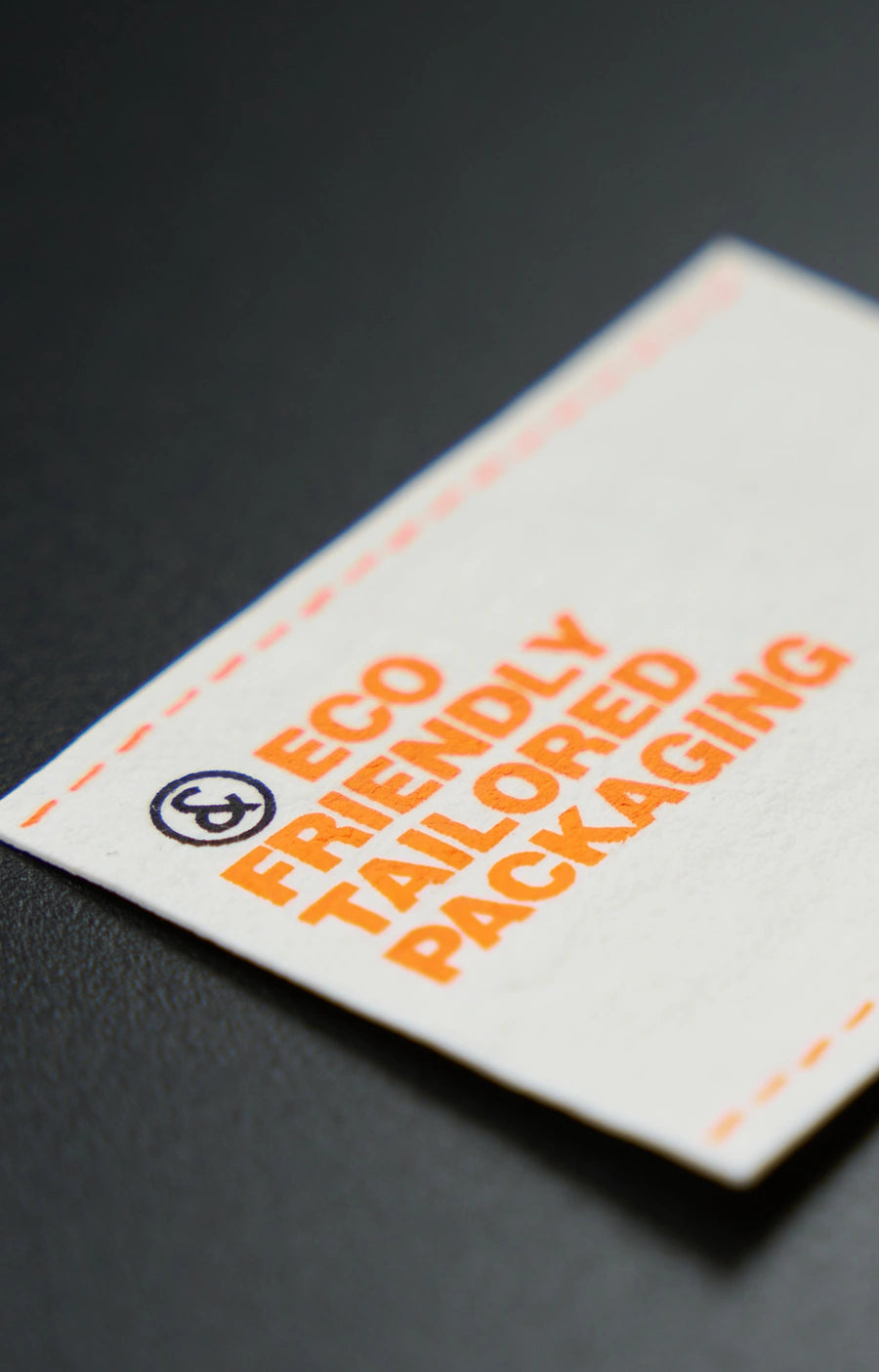 Booklet tag, printed in four-color process, matt lamination and hot stamping with translucent yellow foil. Threaded with self-locking braid with two-color cord
